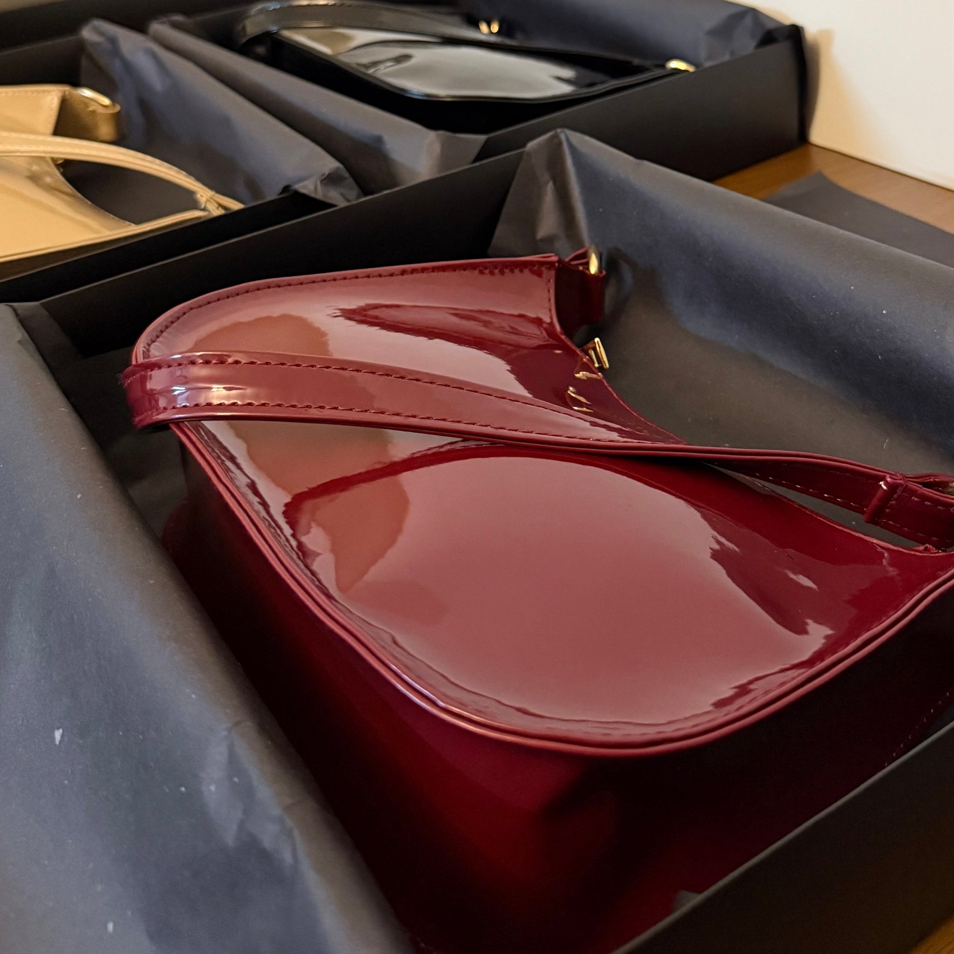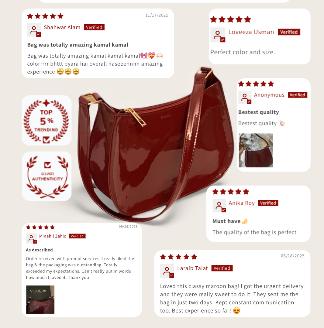 Indulge in sophistication with our patent leather shoulder bag, designed for the modern, fashion-forward woman in Pakistan. Available in classic black and rich maroon, this bag is a statement of elegance, perfect for formal events, evening outings, or elevating your everyday look.