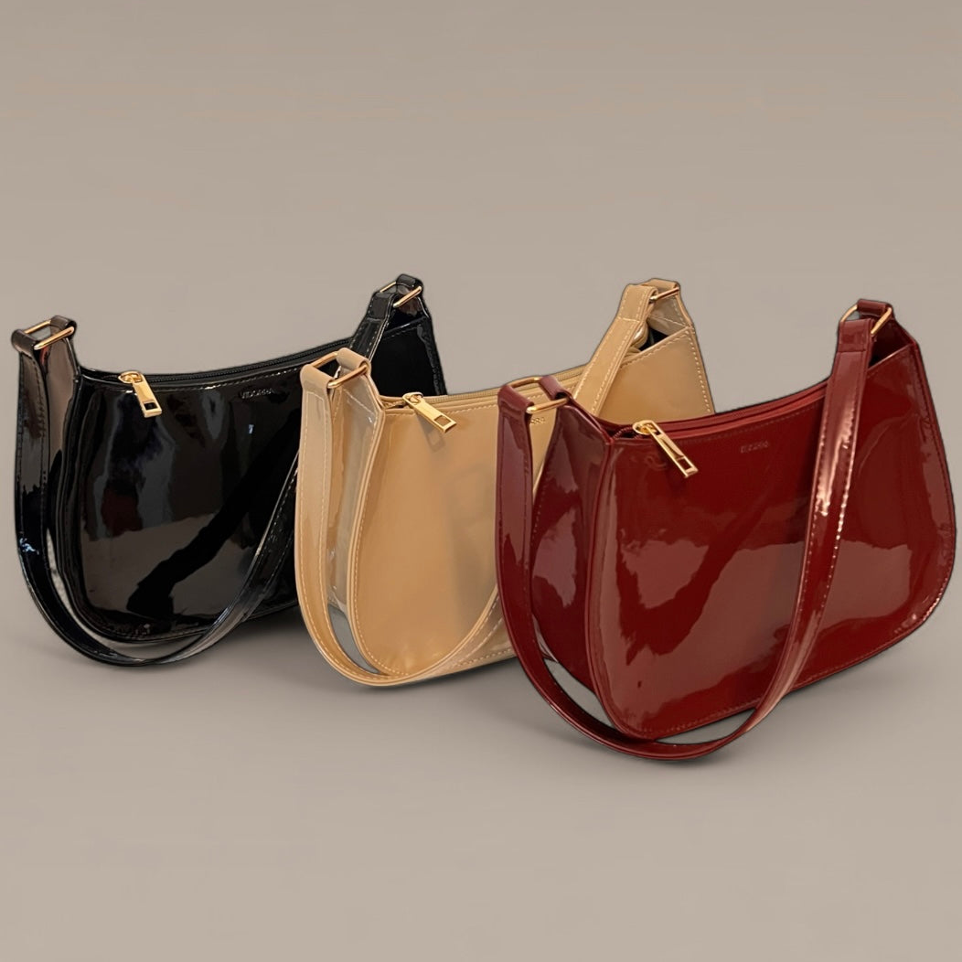 Crafted with high-quality patent leather, this handbag offers a sleek, glossy finish that exudes luxury. The structured silhouette and comfortable shoulder strap ensure both style and functionality, making it a must-have addition to your wardrobe.