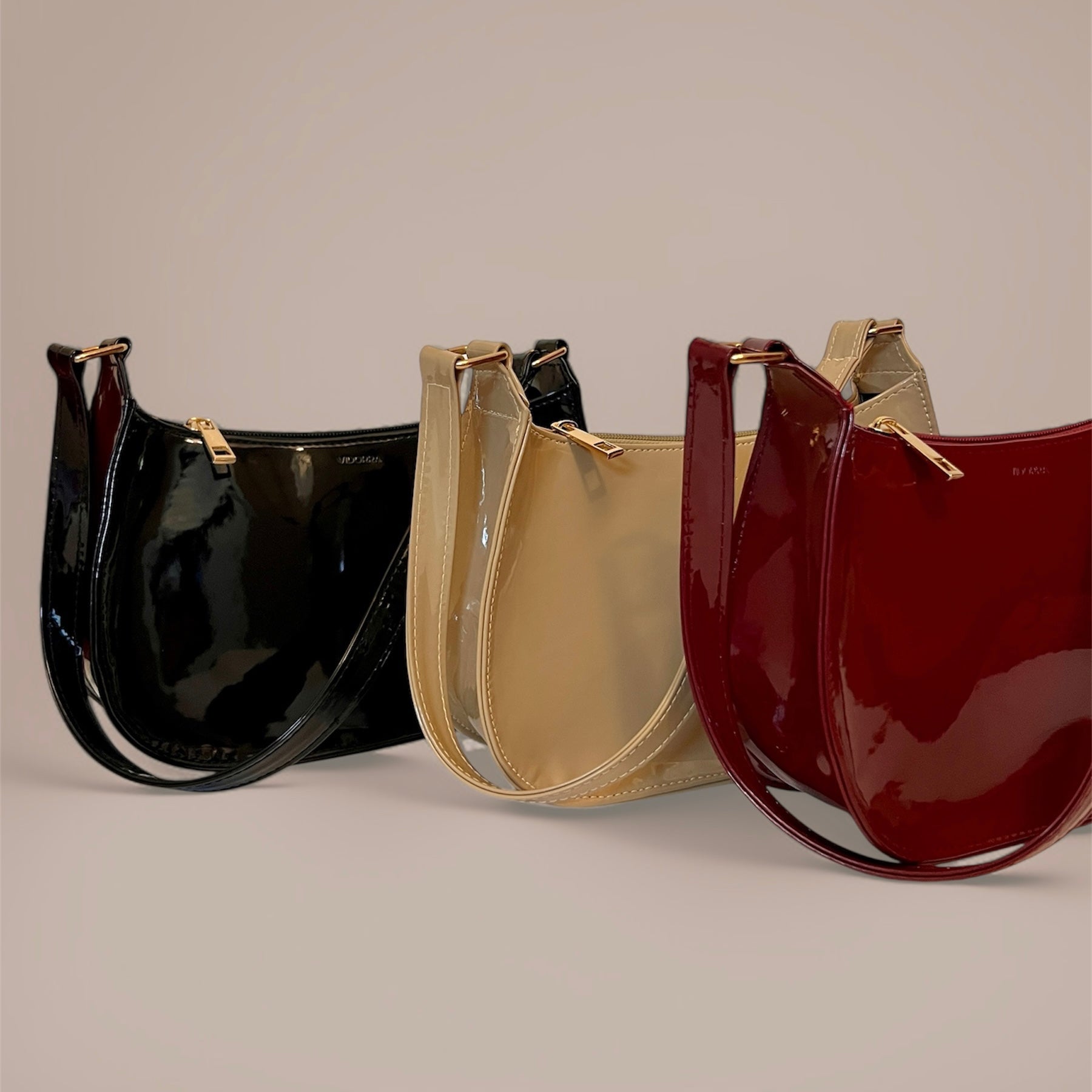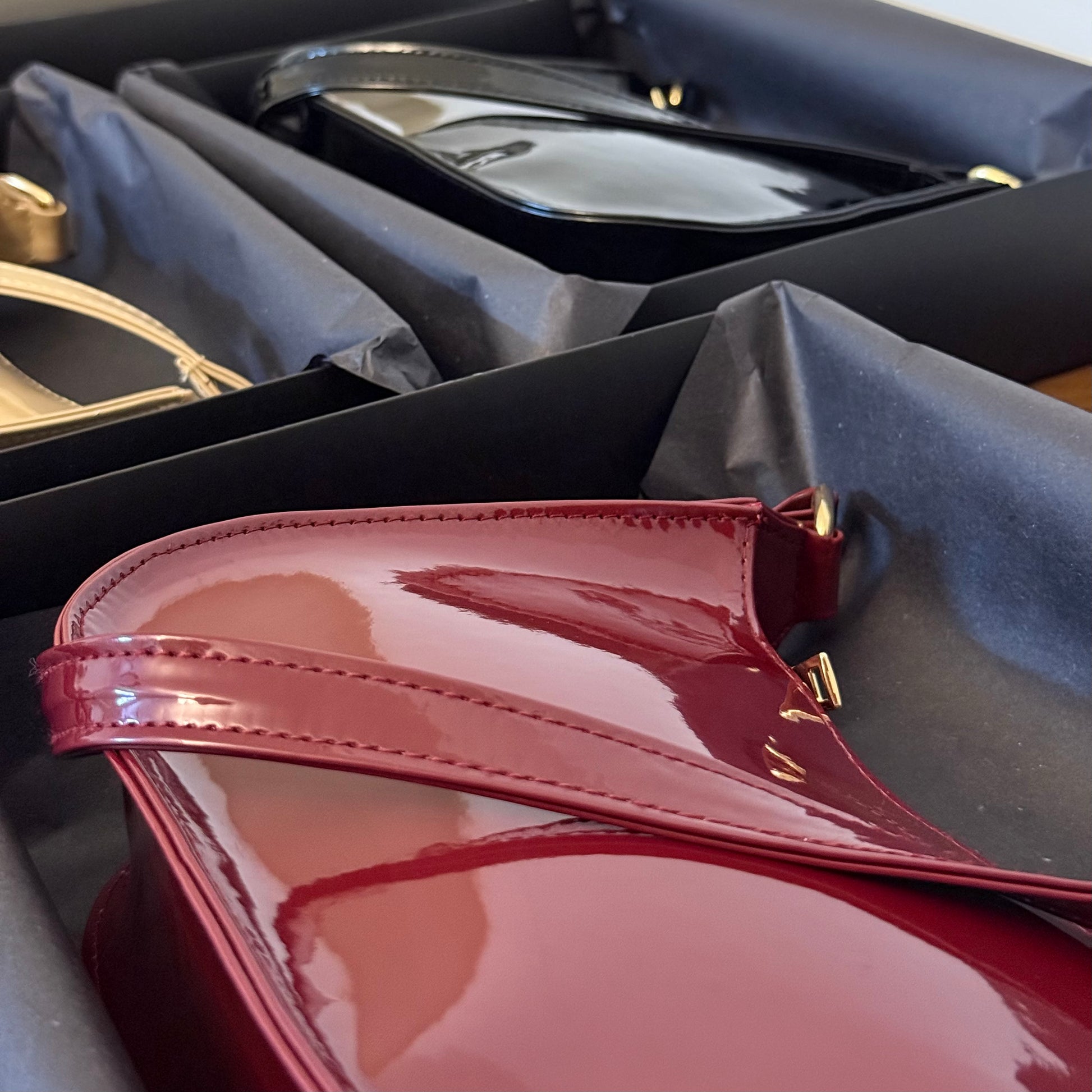 • Luxurious patent leather with a glossy finish