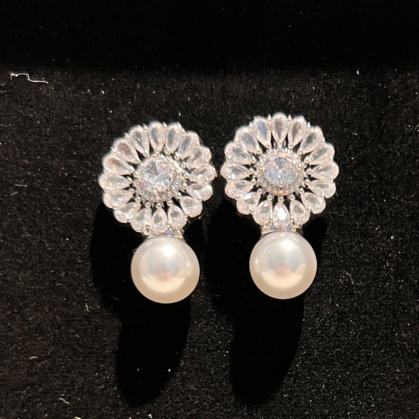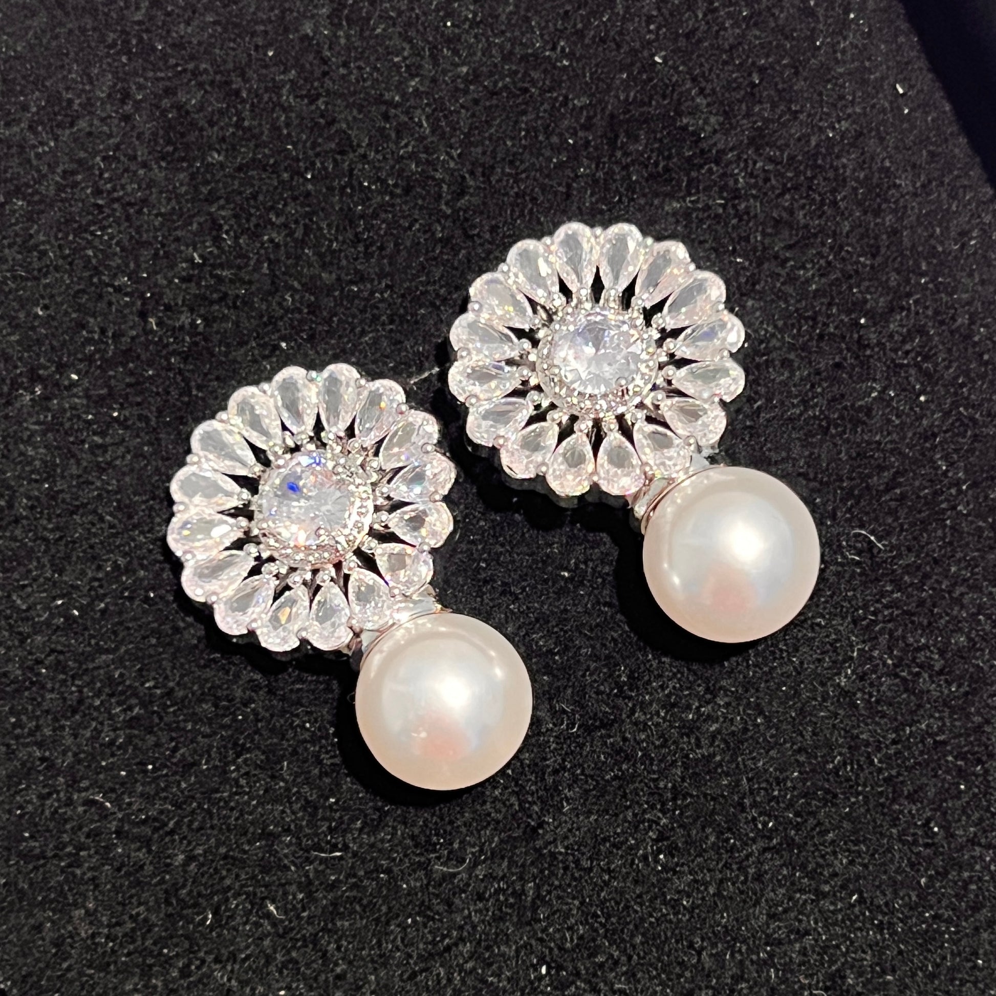 Elevate your formal party look with our Zircons and Pearl Drop Earrings. Crafted with high quality materials, these luxurious earrings are the perfect finishing touch to any outfit. Add a touch of elegance to your style with these stunning statement pieces.